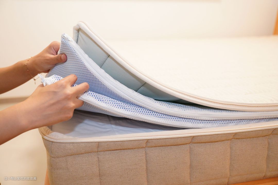 里面可以看到两种软硬程度不同的科技棉搭配在一起,完全不用纠结到底是买硬床垫,还是软床垫,因为栖作是可以通过调整垫层的顺序,能够搭配出偏硬或者是偏软的睡感体验。