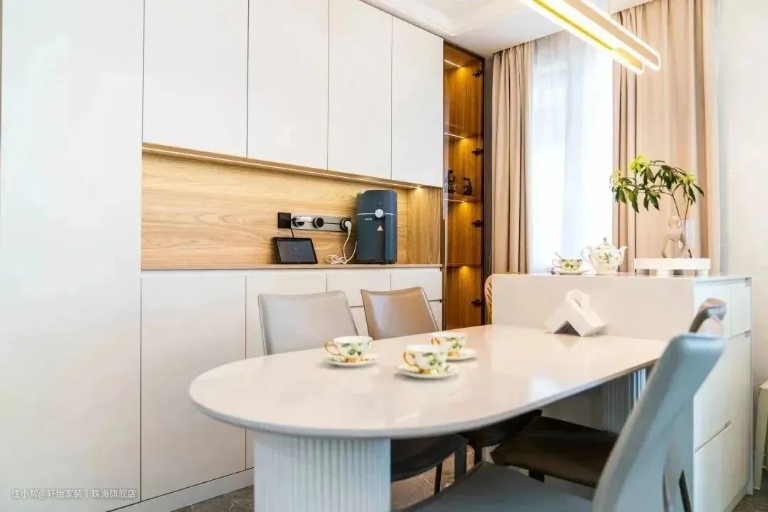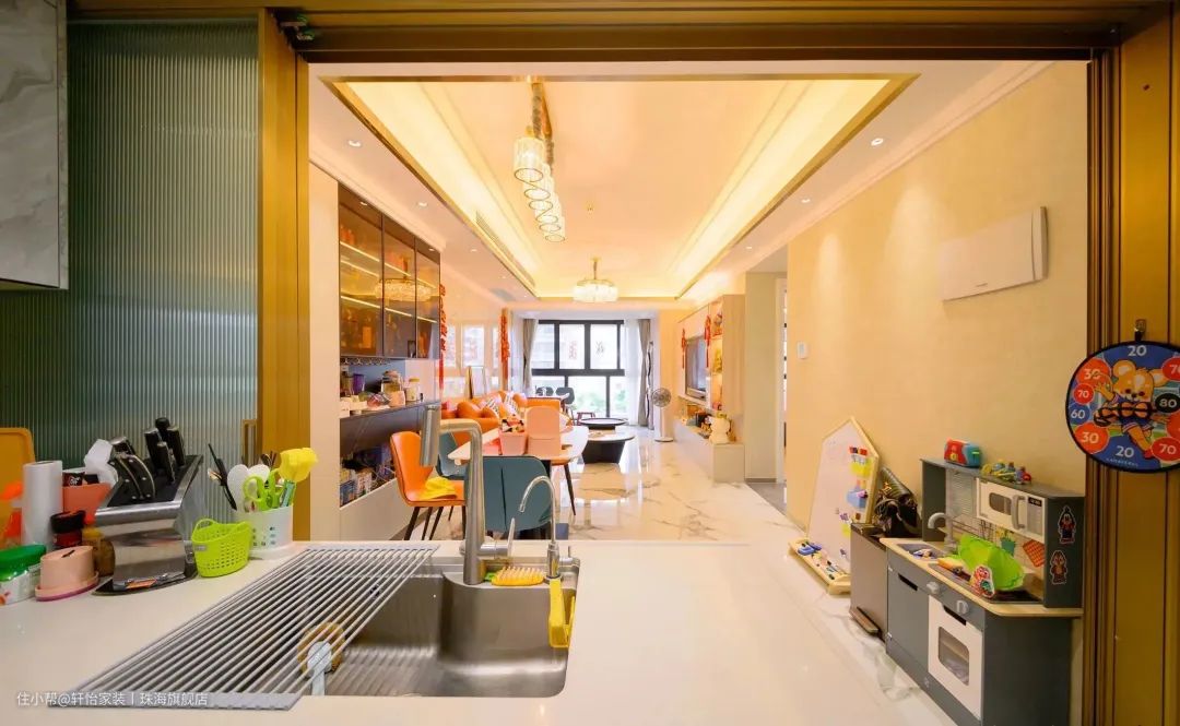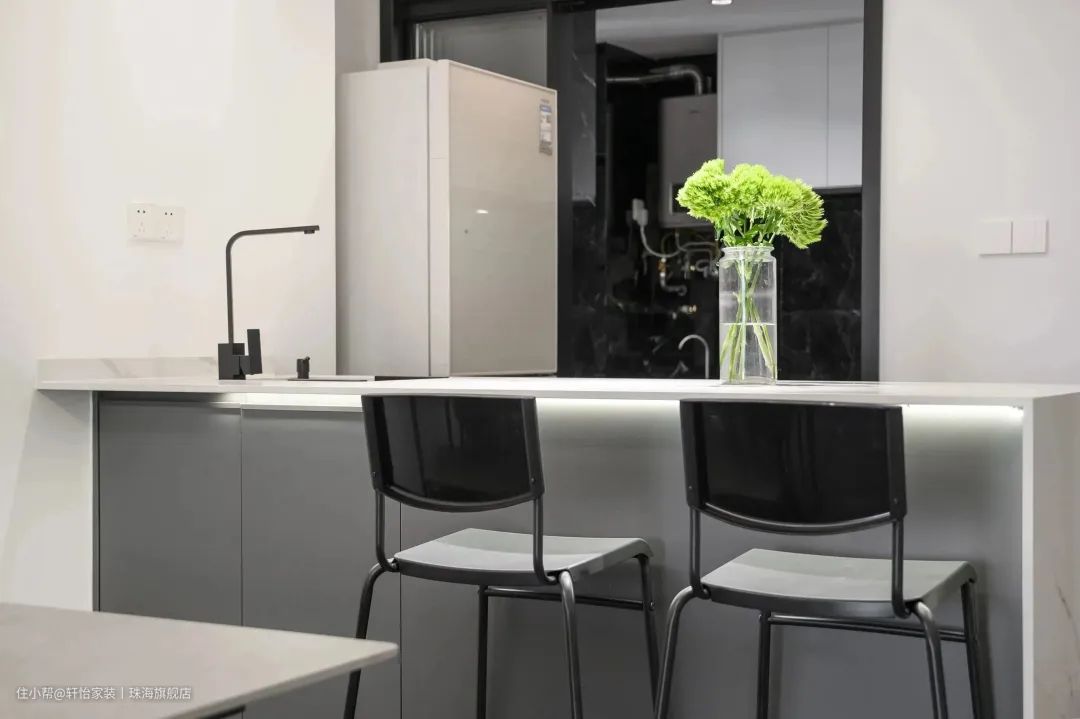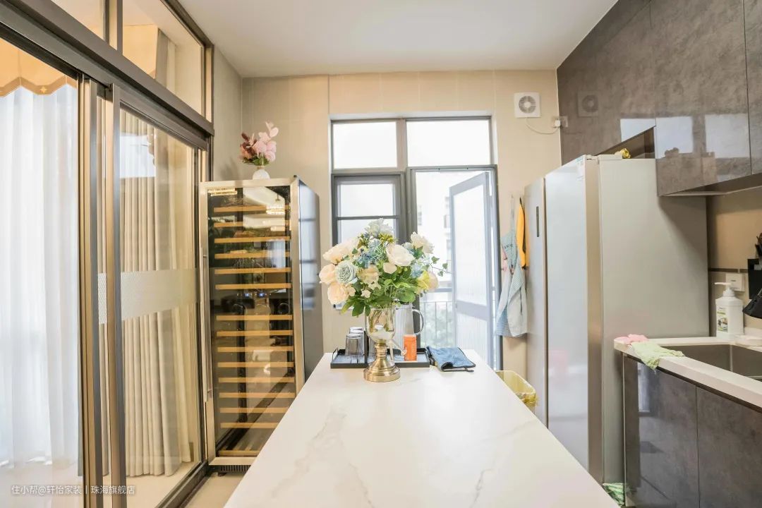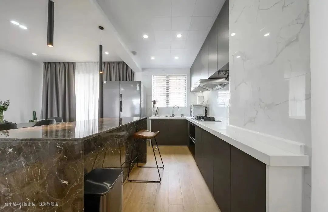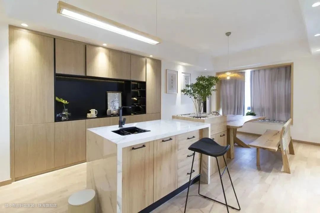 岛台扩大了厨房的操作空间,既能作为备餐区,又能作为西厨区,内嵌水槽和电器,实用性更强。