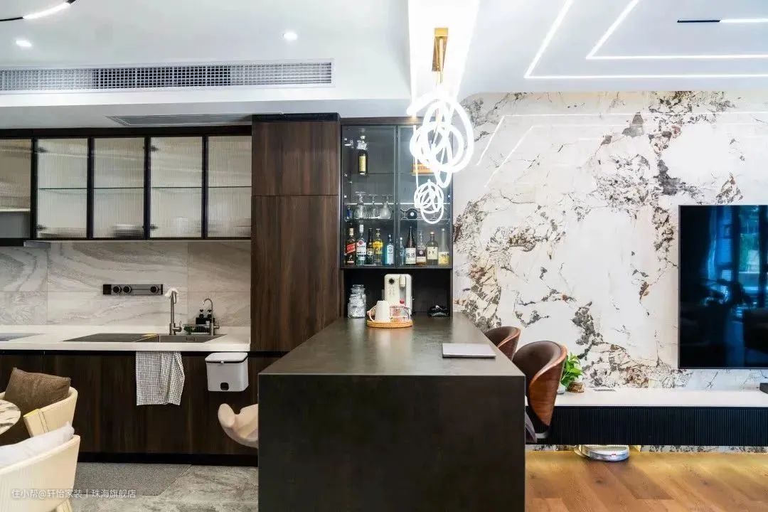 比如岛台的备餐区应该与背后的厨房操作台配合协调,这样在烹饪的时候才能流畅顺手。