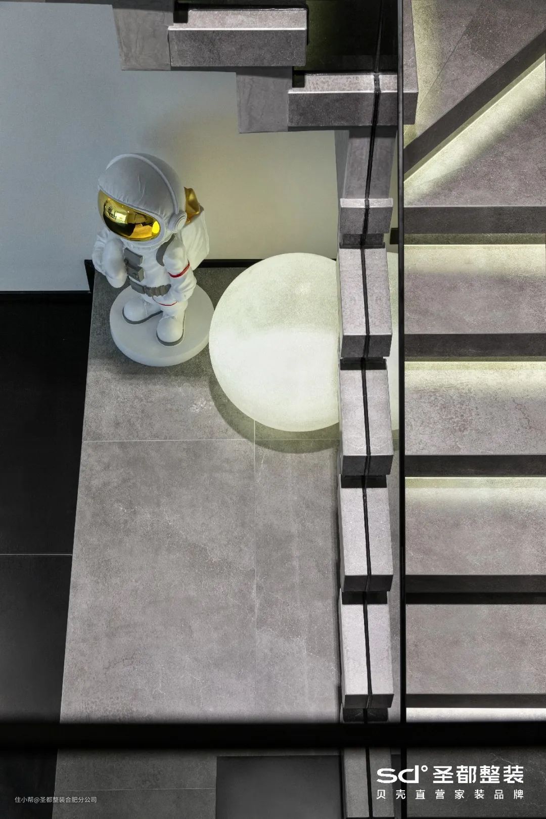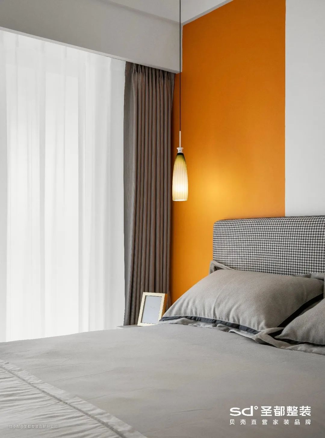 光影绰绰的暖橘线条一扫原本的沉闷感,让空间焕然一新。