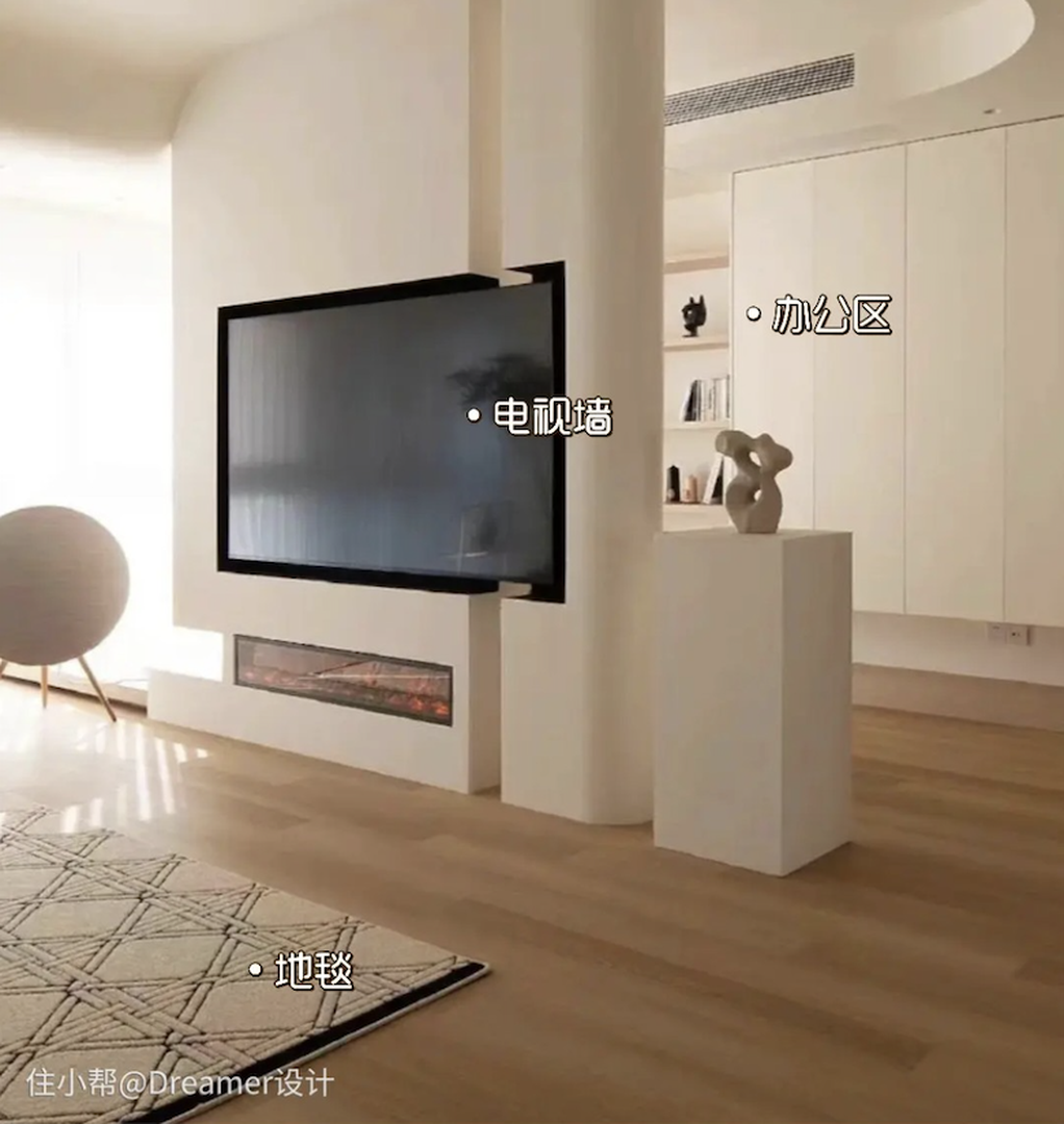 洄游动线还能让不同功能区同处在一个空间内,拓展了视觉效果,空间显得更大更通透。