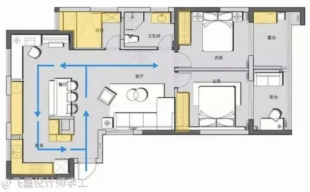 洄游设计可以简单的理解为是一种环形路线,是空间动线规划的一种方式。