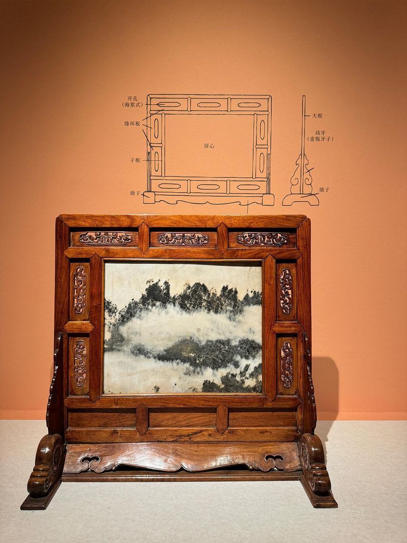 座屏:由插屏和底座两部分组成,小规格的座屏可以再细分为摆在书桌几案上的“桌屏/砚屏”,放在炕上的“炕屏”,遮挡蜡烛的“灯屏”等。