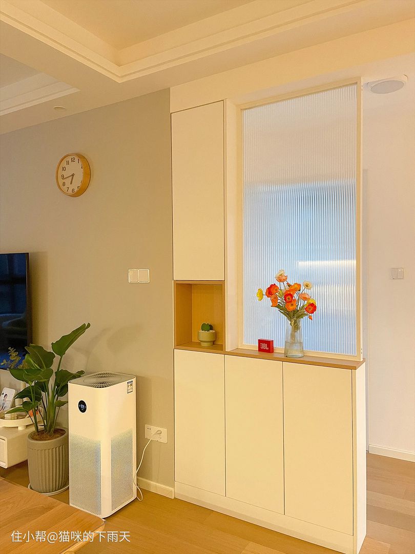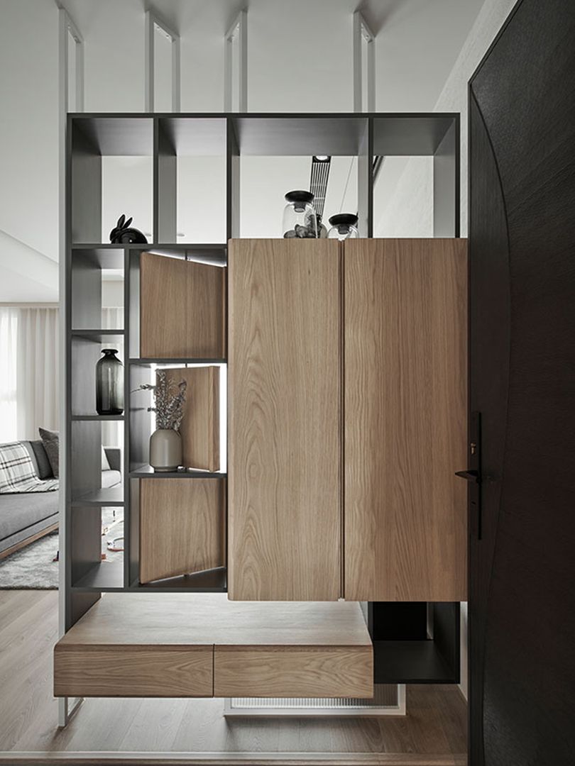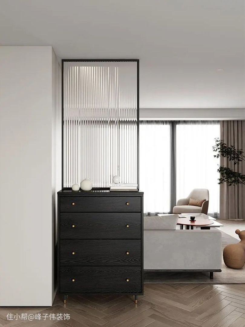 屏风柜将屏风的遮挡功能与固体收纳结合,可以用于入户位置,增强玄关功能。