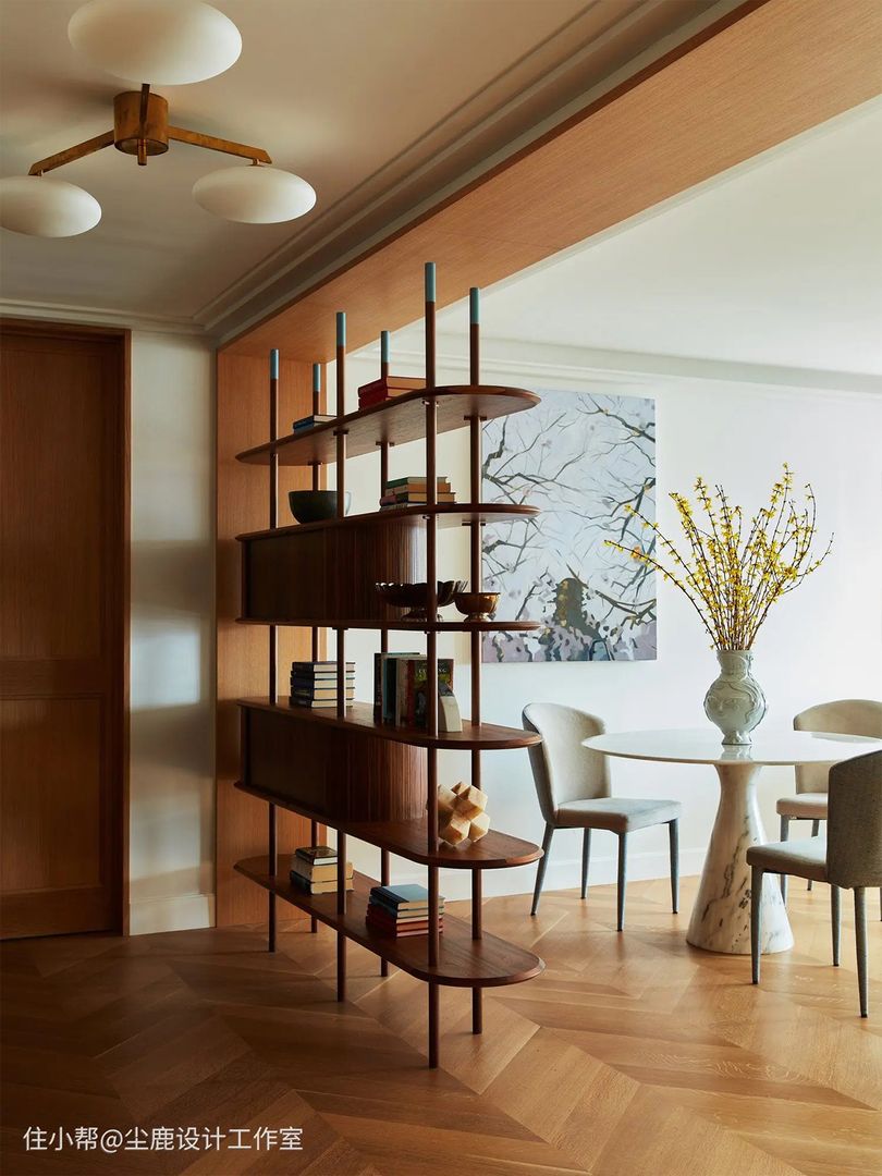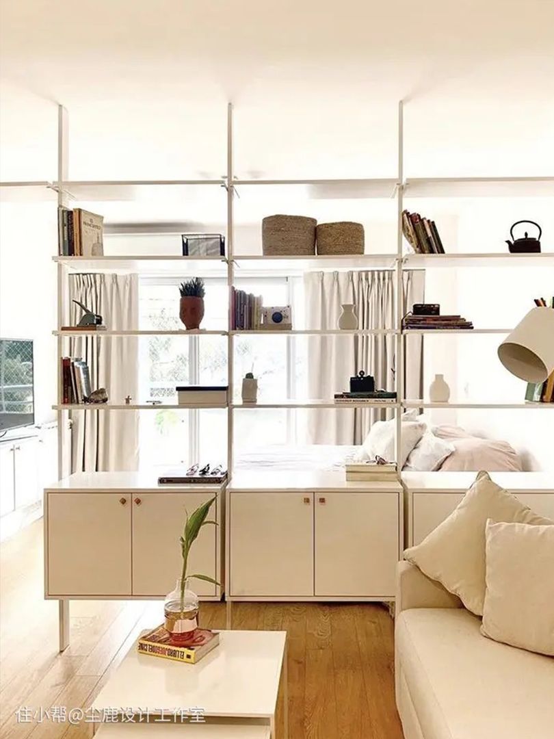 屏风形式可以做半墙或者顶天立地的造型,让空间隔而不断;也可以结合收纳柜、书架等,既实用又起到一定装饰作用,不像墙体一样单调!