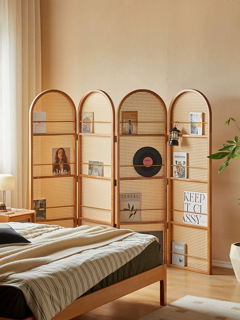 隔断屏风用于区分功能区块,适用场景主要有入户门和客厅之间,客厅和餐厅/书房之间,卧室卫生间和床之间等等。