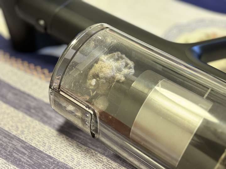 我吸完床单和被褥后,可以明显看到尘杯里有非常多的螨虫和还有毛发尘屑都堆积到了一起。