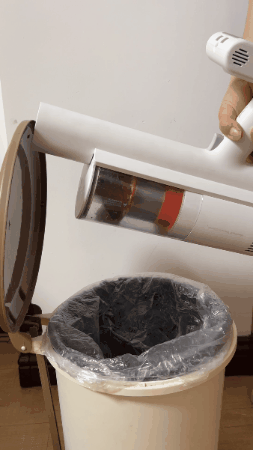 市面上大部分的吸尘器都采用手动倒尘的方式。看上图我之前用的吸尘器在倾倒或者喷射过程中就会造成扬尘飞溅,甚至会喷脏手,垃圾桶周边也都是肉眼可见的灰尘,费心费力。