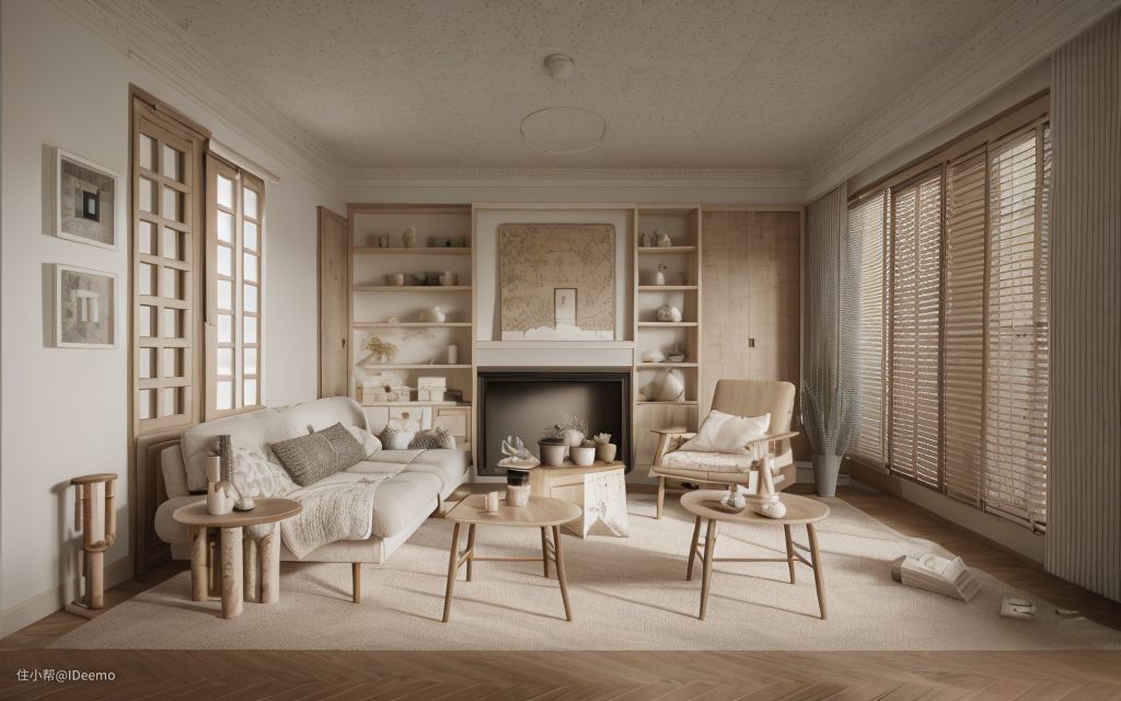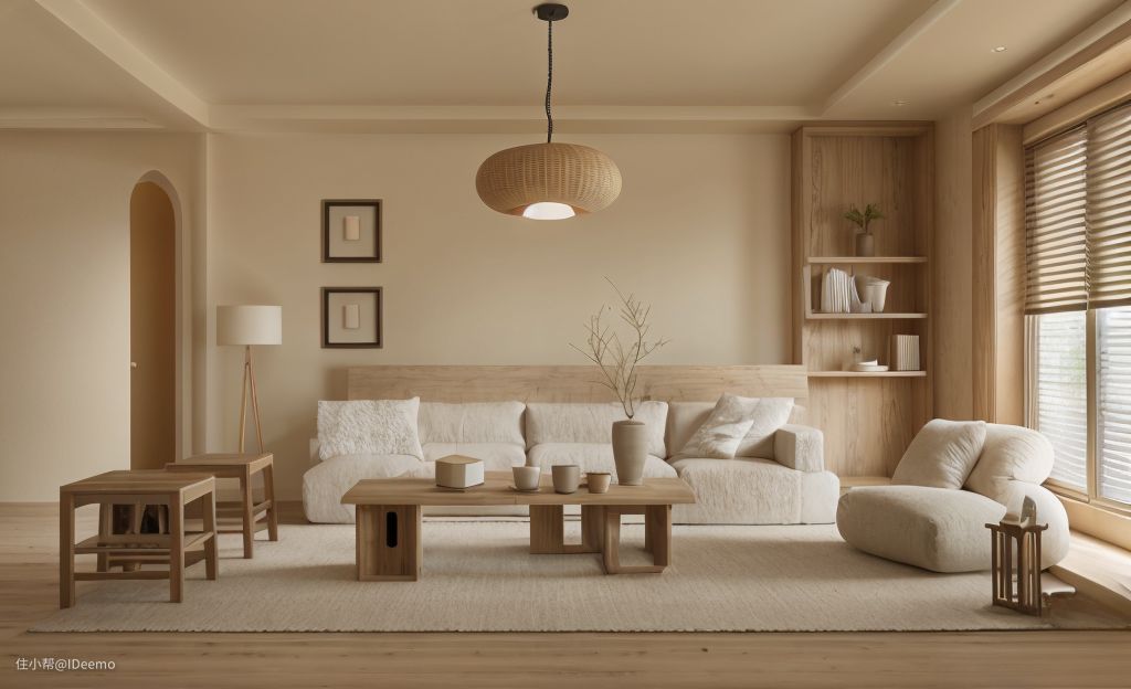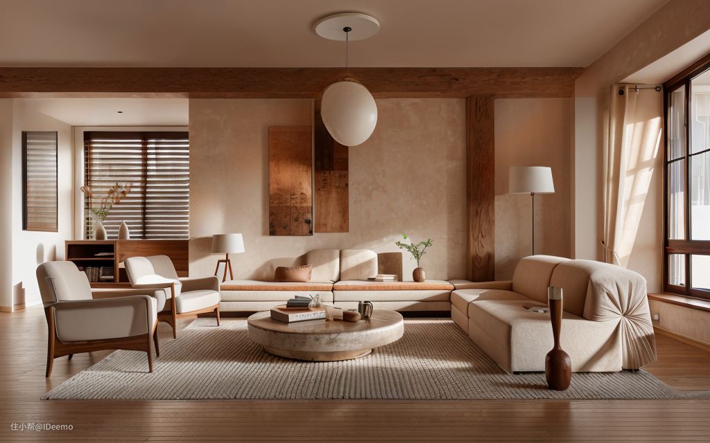 在色彩的运用上,侘寂中古风通常以低饱和度的中性色为主,如米白色、灰色、棕色等。这些色彩能够营造出一种平和、宁静的氛围,让人感到放松和舒适。可以通过不同深浅的色彩搭配,营造出层次感和立体感。