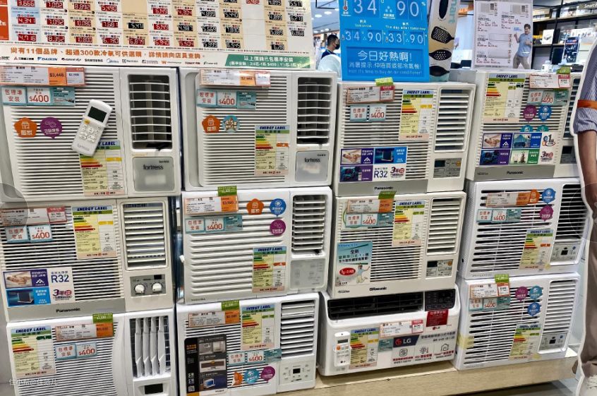 香港家电卖场里琳琅满目的窗机空调 图源:@香港姑娘Cherry