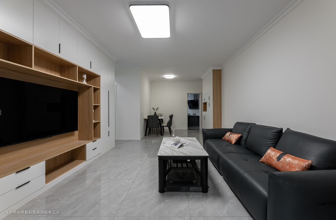 满墙电视柜的设计应兼顾收纳与展示的功能。开放式的格子可以放置书籍或装饰品,有门板的柜子则可以收纳纸巾、清洁工具等日常用品。此外,考虑电视柜内部的隔板是否可以调节,以适应不同大小物品的存放需求。