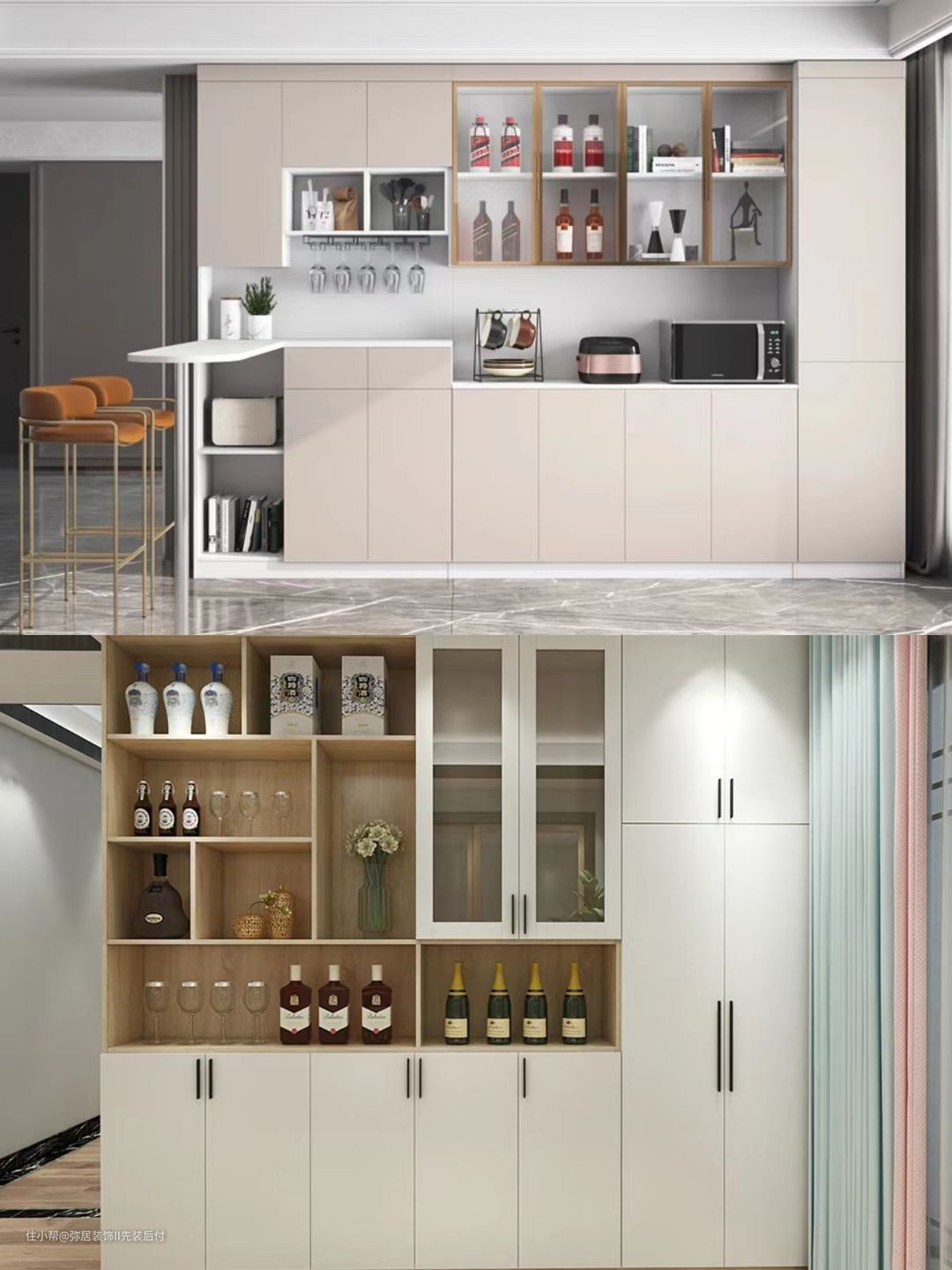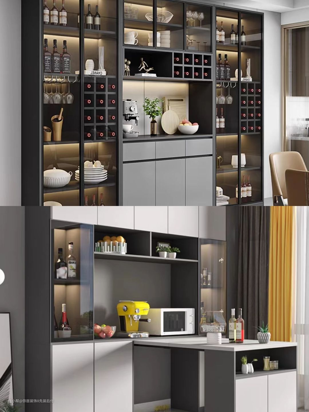 - 酒柜+餐边柜:在有限的空间内将酒柜和餐边柜的功能融合,既实用又美观。一部分组合柜还设有专门的酒格区域,方便存放酒瓶,同时保持餐厅的整洁。