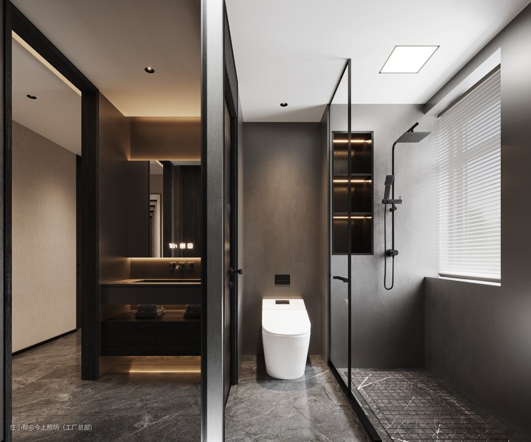 马桶区域可以安装一个五孔插座,供智能马桶或者手机充电使用,由于该区域较为潮湿,一定要安装带防溅盒的插座。