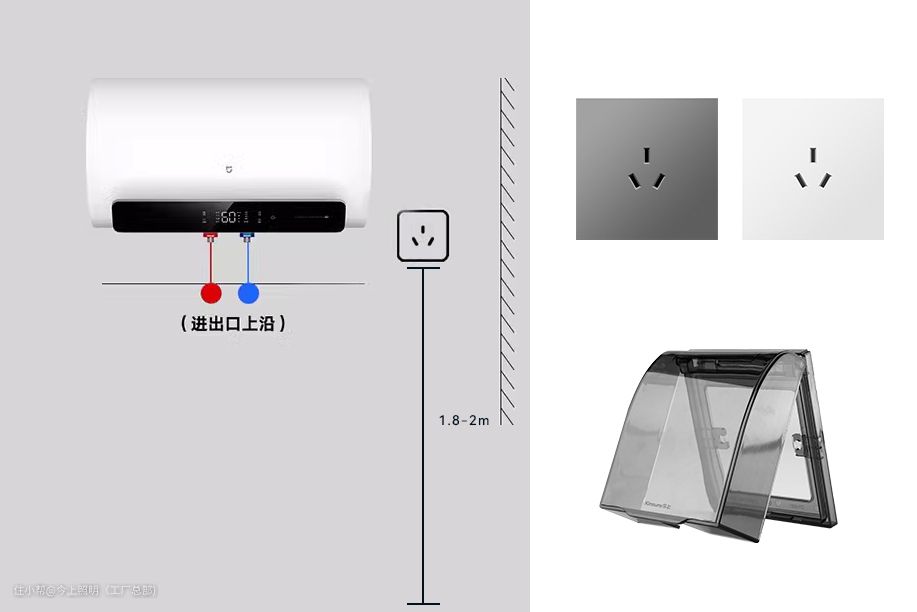 ✔卫生间区域离水源较近,使用时容易溅水,插座安装不要低于40cm