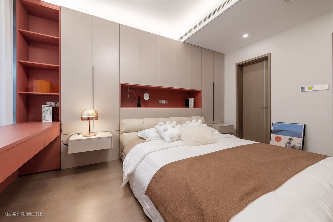 卧室作为私人空间,其设计不仅要考虑舒适性,还要与整屋的设计风格保持一致,以营造一个宁静和谐的居住环境,下面这两间卧室结合了不同的色调打造实用且简洁舒适的空间,一起来看看吧!