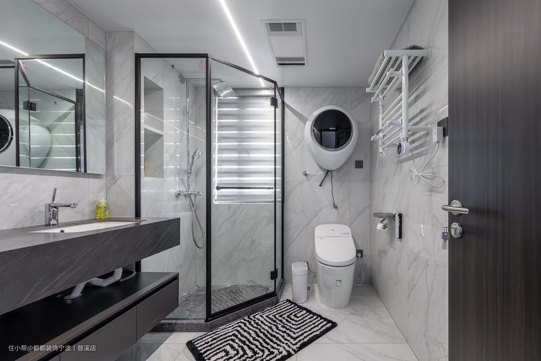 全墙或者无隔断设计,可以让卫生间看起来更为宽敞,提升空间利用效率。