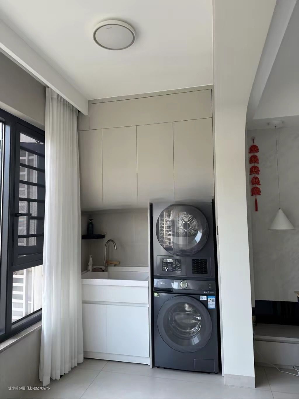 阳台洗衣池与洗衣机一体柜设计:
