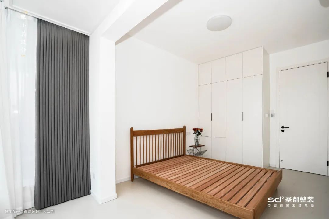 ✔ 对收纳有高需求的家庭,一定不能错过卧室阳台这片空间。纳入室内后,在此定制一柜到顶的收纳柜,瞬间扩容。