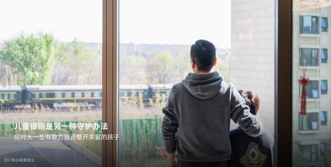儿童锁则是另一种守护办法,应对大一些有能力自调整开关窗的孩子,应用儿童锁往往更加有效,能够直截了当的排除掉开窗造作的危险隐患。