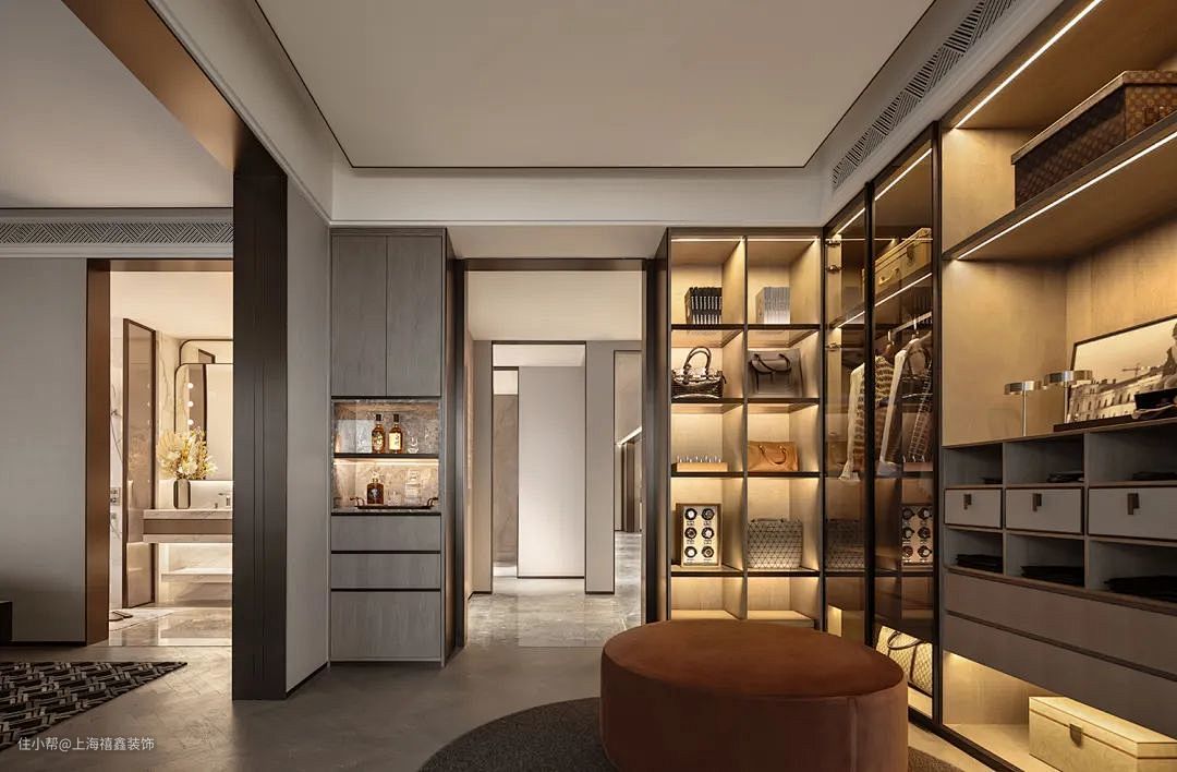 衣帽间衣柜的风格应与整体家居风格相协调统一。例如,如果整体家居风格偏向简约现代,那么衣柜的设计也应以简洁线条、纯色搭配为主;如果整体家居风格偏向复古或田园风格,那么衣柜的设计则可以融入更多的曲线、雕花和自然元素。