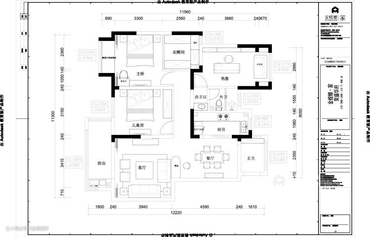 两个人平时喜欢看书,对书房的要求是要有个很大的书柜,再有客房的功能,设计了沙发床。