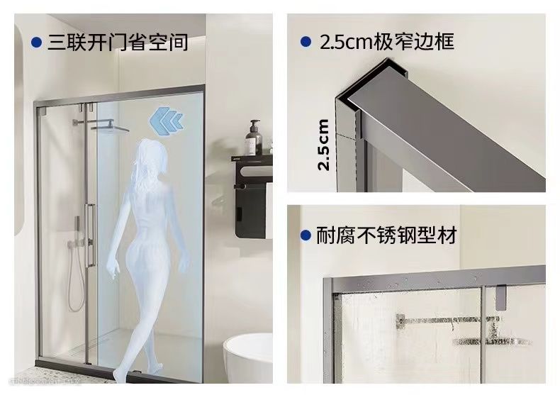 三联动淋浴房是一种实用的卫生间淋浴隔断设计,它通过三扇可以滑动的门来实现淋浴区的封闭,既节省空间又方便使用。这种设计特别适合进出空间有限的卫生间。以下是一些建议,帮助您选择三联动淋浴房: