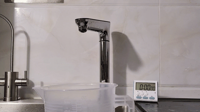 实测了一下,在常温水模式下,接满一升的量杯,用了20秒左右。