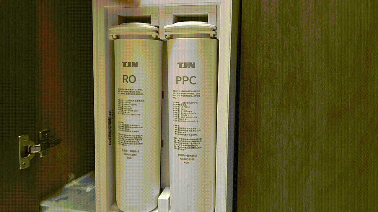特洁恩H10净热一体机使用了三个滤芯,可以做到四重过滤。