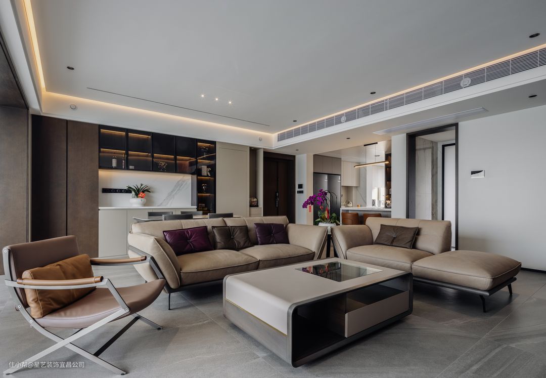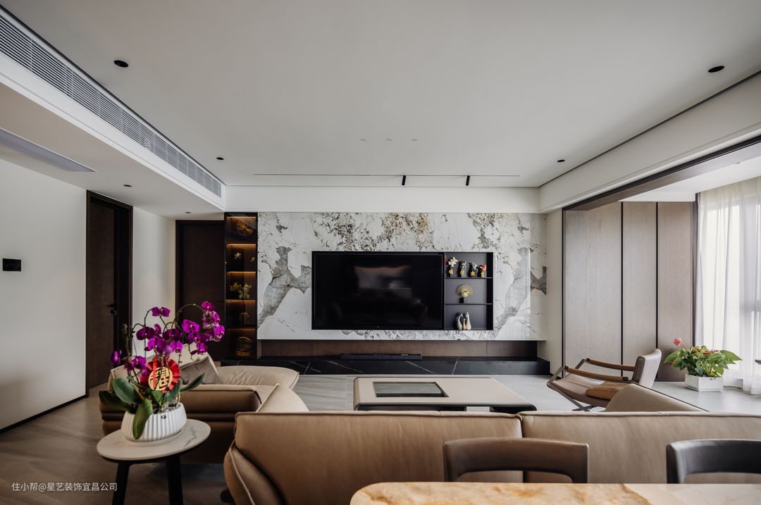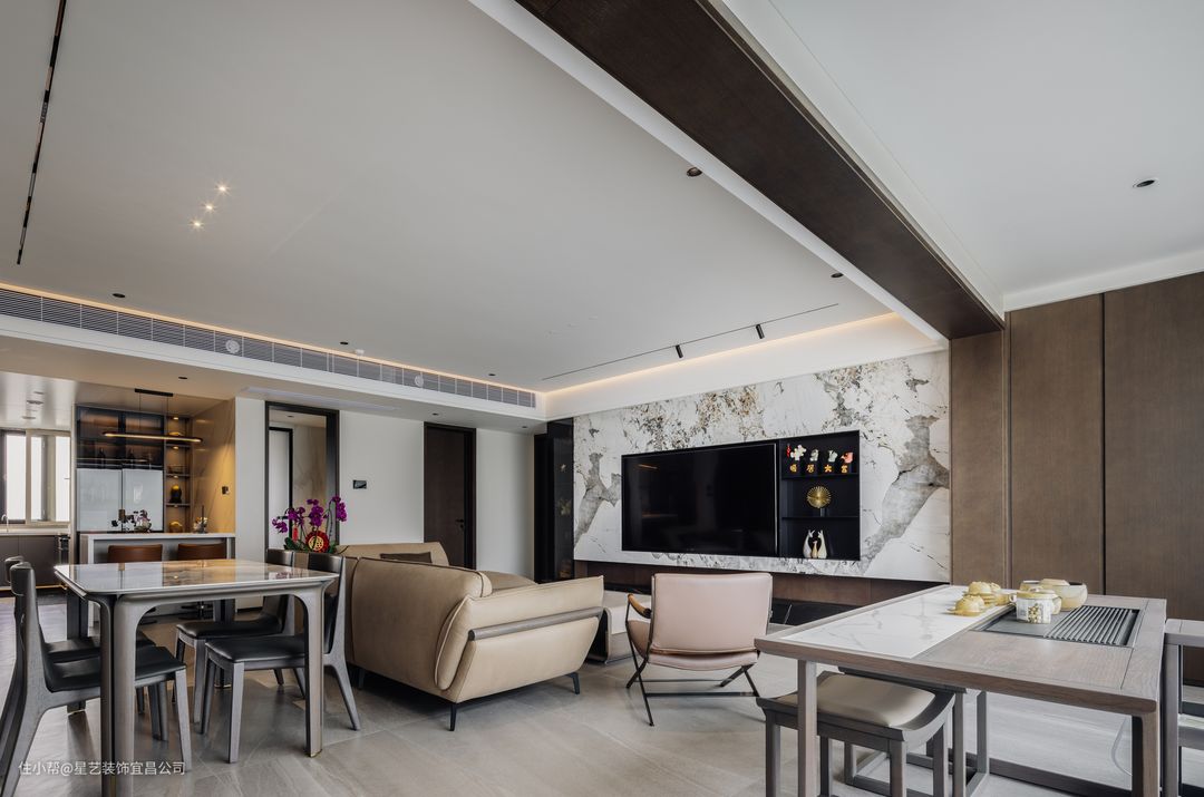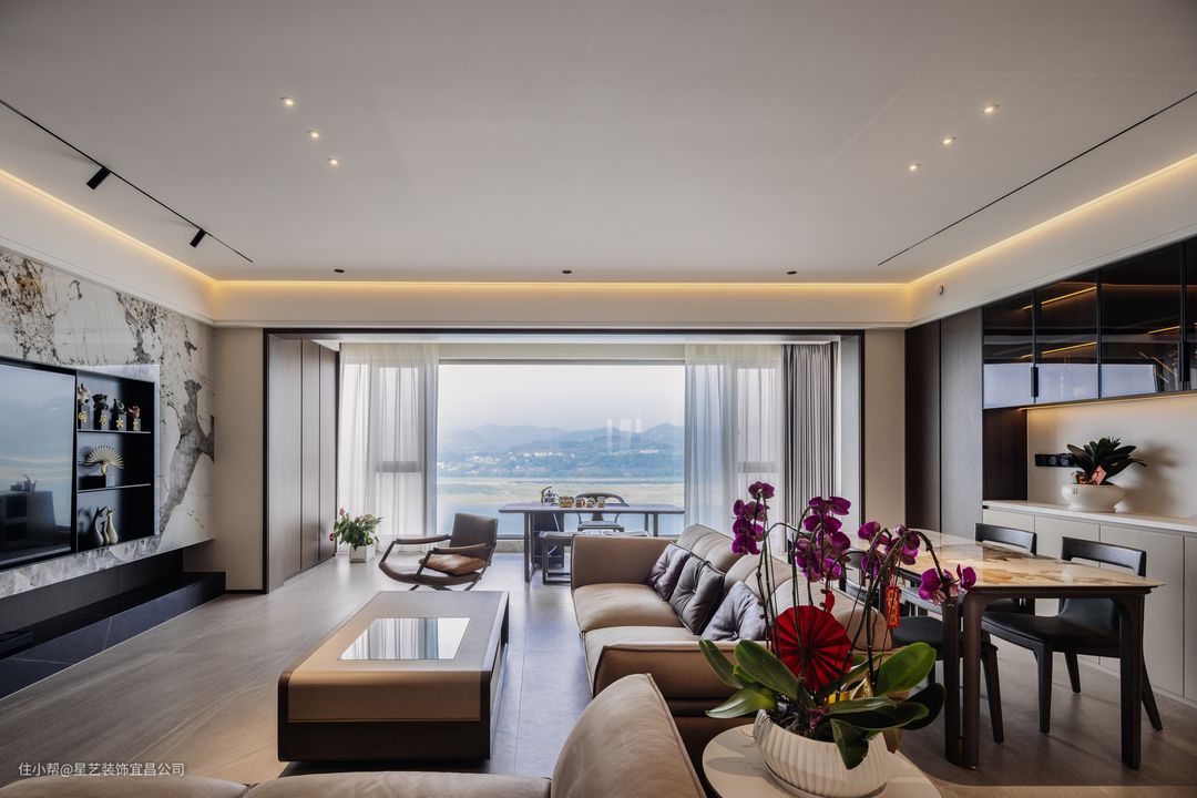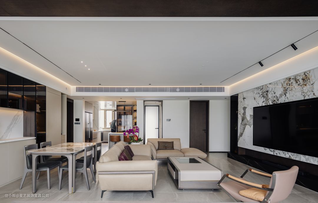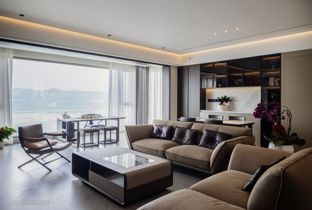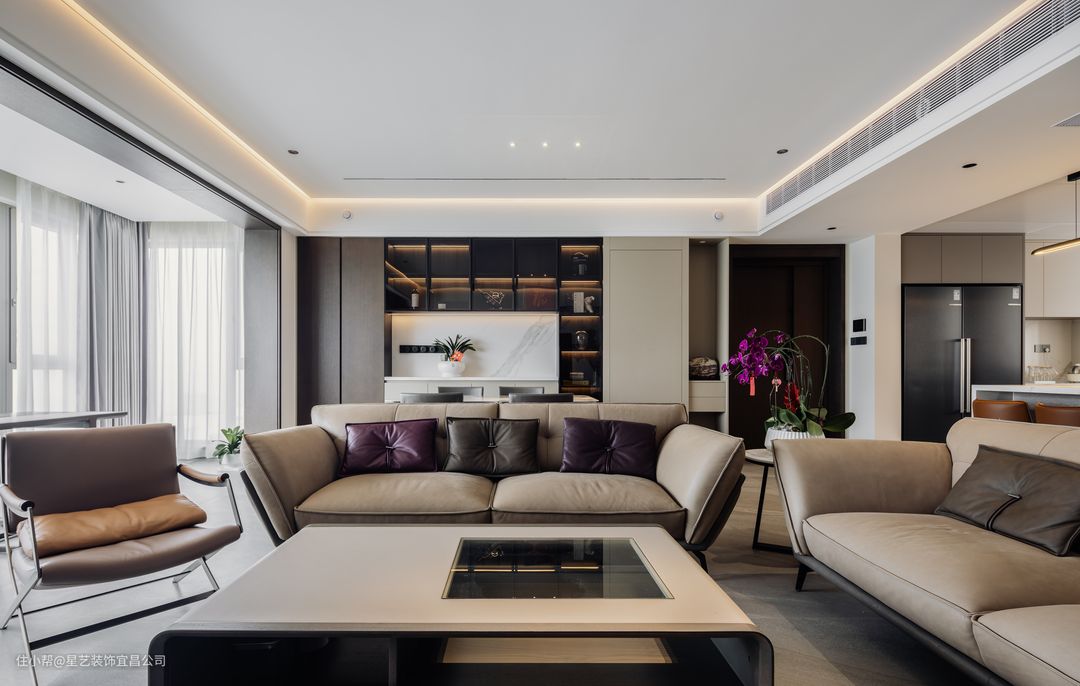 选择一个与沙发比例协调的茶几,既要有足够的收纳功能,又不能过于庞大影响空间感。可以考虑玻璃、木质或石材材质的茶几,根据个人喜好和风格进行搭配。