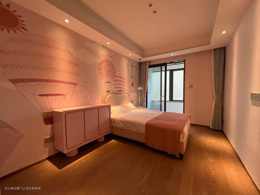 2. 根据孩子的喜好选择色彩:如女孩可选用粉色、紫色等温馨色调,男孩则可选择蓝色、灰色等冷色调。