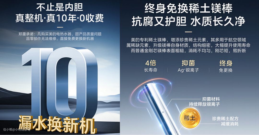 比如美的的稀土镁棒,可以提升4倍使用寿命,8年不用更换。