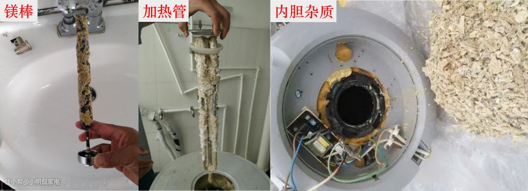 电热水器用久了,势必会产生水垢,还有镁棒消耗产生的沉淀物。