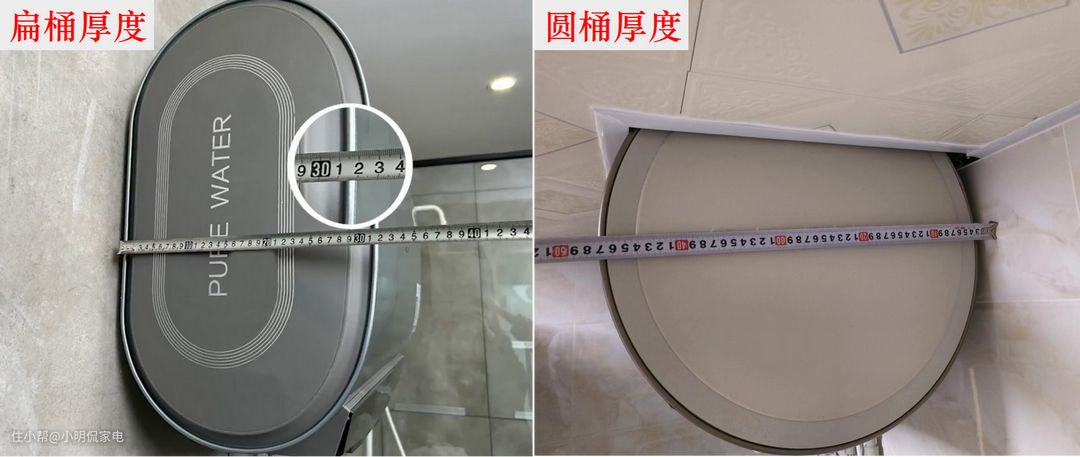 宽度上面,圆桶普遍在800mm以上,扁桶可以做到700mm以内,特别适合小空间的安装。