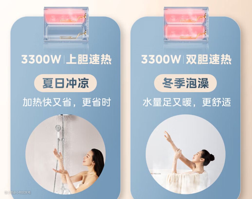 特色是14倍增容,双胆双加热管,功率是3300W+3300W。