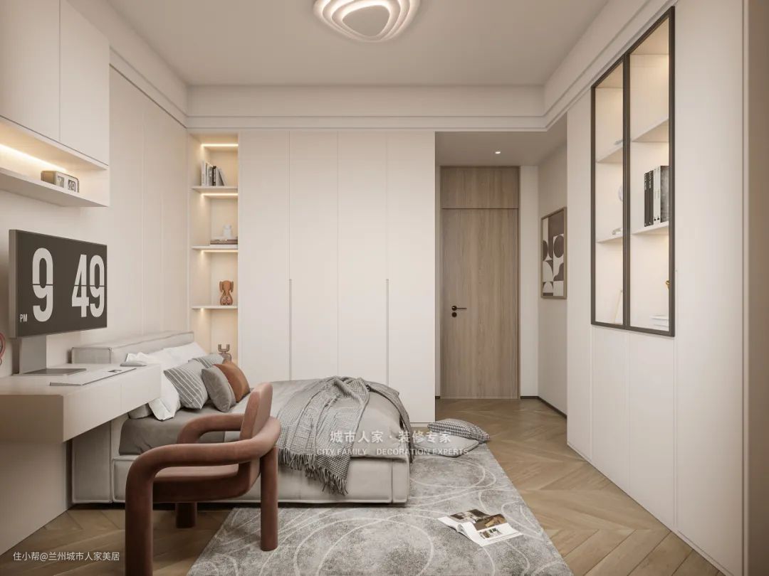 一侧飘窗利用,让屋主既可以在这个空间里舒适地休息和放松,又可以随时切换到工作模式,处理工作和学习上的事物。