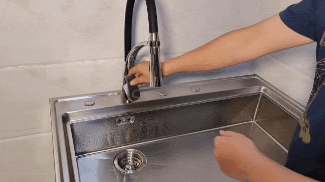 水龙头可以拉伸,想洗哪里就拉到哪里,全槽无死角,比较方便。