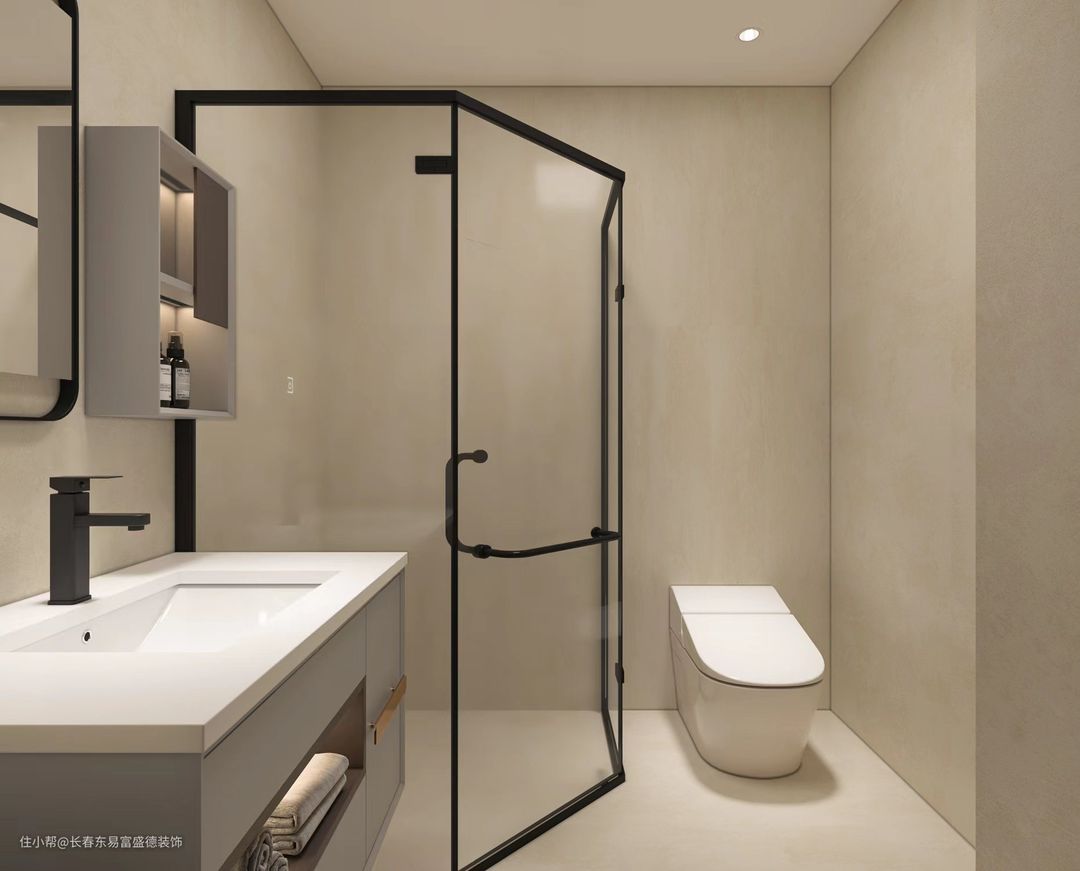 主卫和次卫分别根据使用需求进行设计,主卫可以配备浴缸,次卫则以淋浴为主。