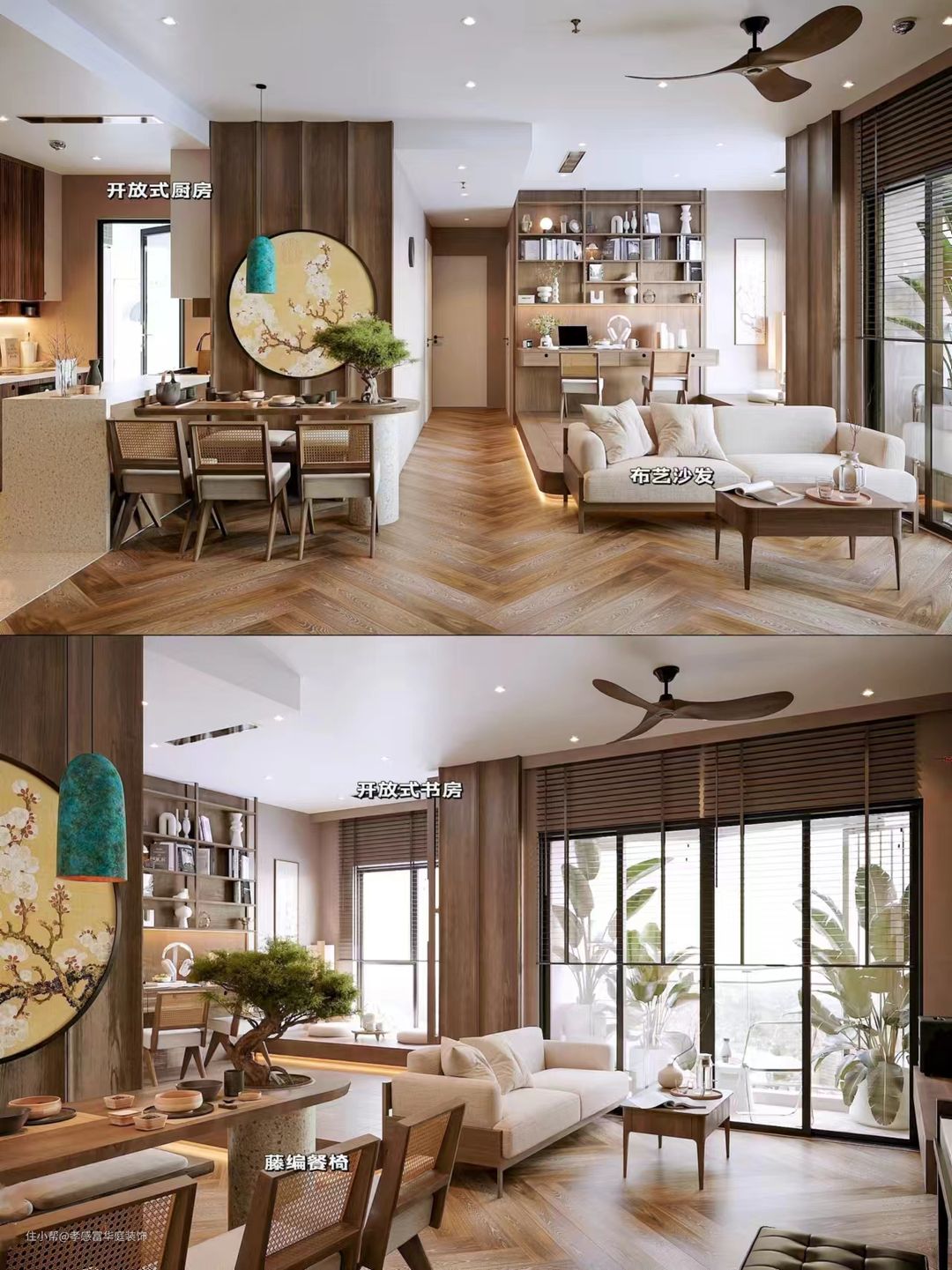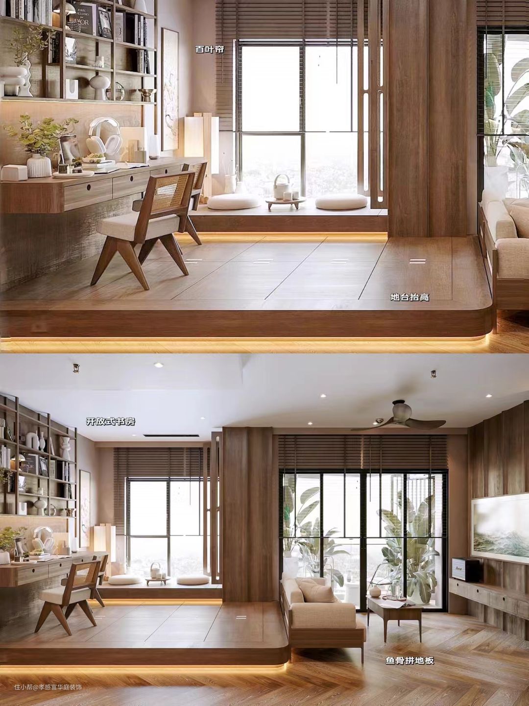 通过巧妙的空间布局,让地台、书房与茶室三者自然融合,形成一个既独立又相互联系的整体。采用开放式设计,减少隔断,利用家具和灯光的变化来区分不同功能区。同时,保持色彩和材质的统一,营造出和谐统一的视觉效果。🎨🏠