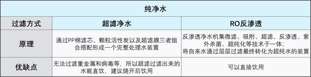 从这两种方式的对比来看,RO反渗透的过滤效果更好,所以现在市面上其实也很少会有净水器采用超滤净水的方式了。