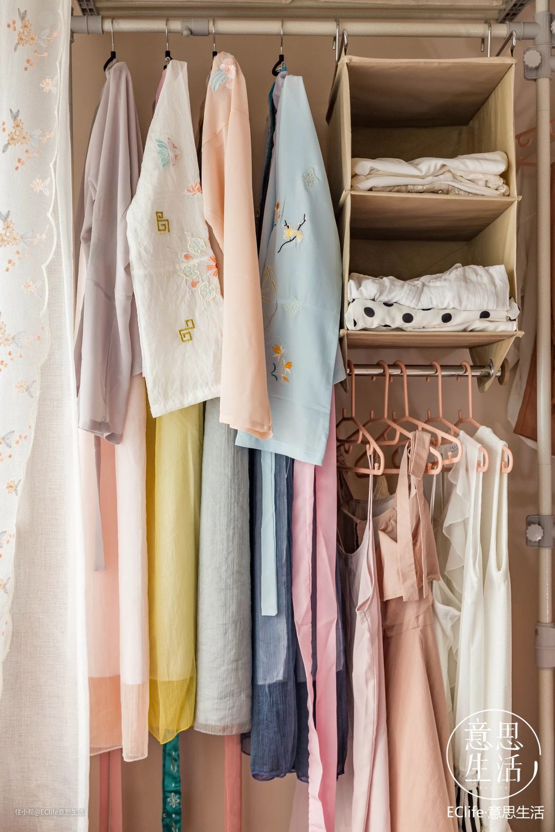 收纳空间不够,衣服们被惨兮兮得堆在一起