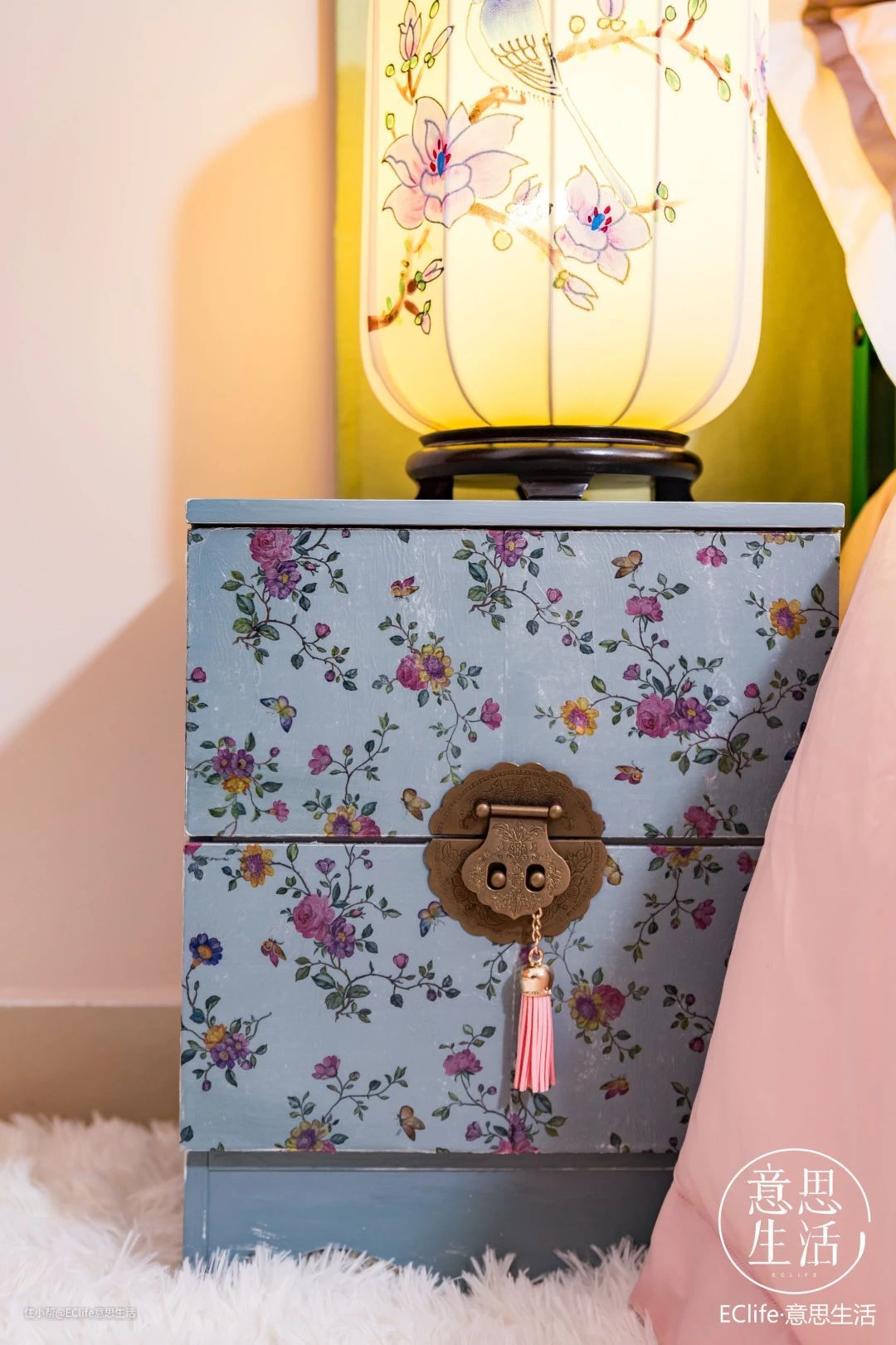 ▲改造单调旧床头柜,融入房间整体风格