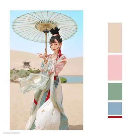 之前小文和我聊汉服,聊到最喜欢的这套超仙的飞天乐。所以我这次决定,就从这套汉服中提取改造的色彩和元素