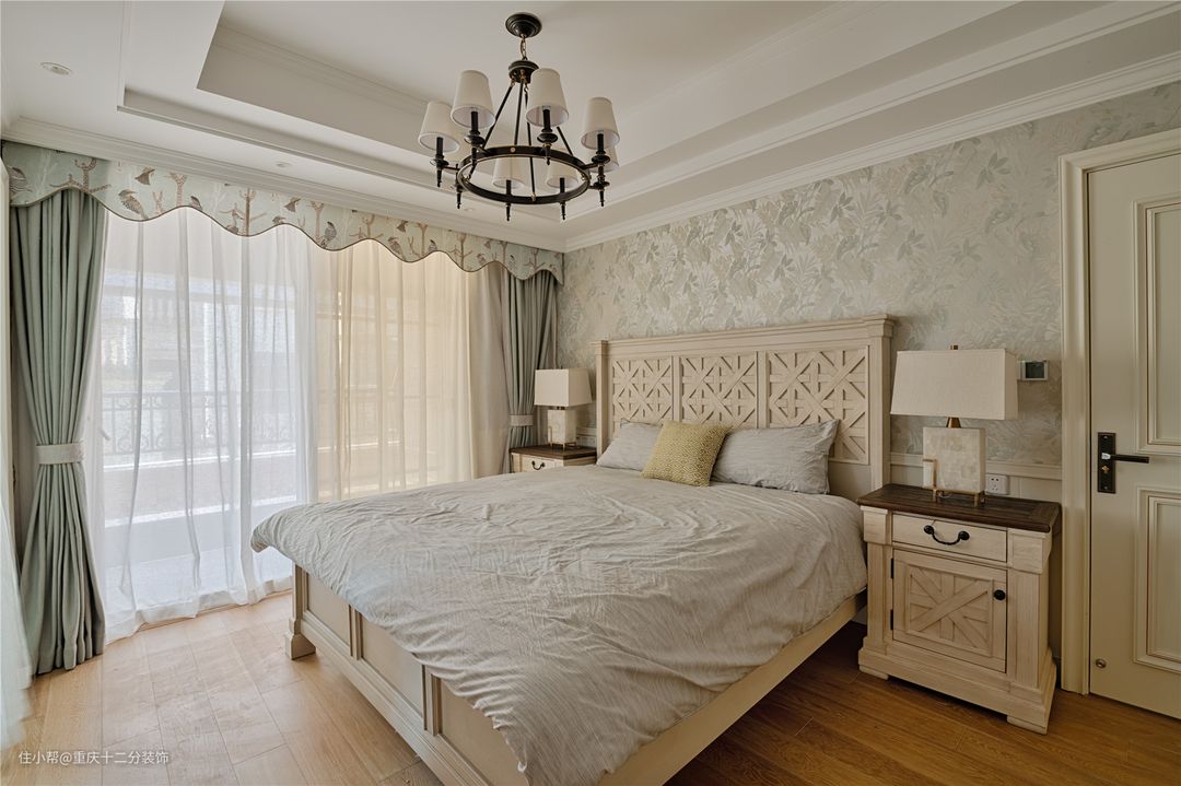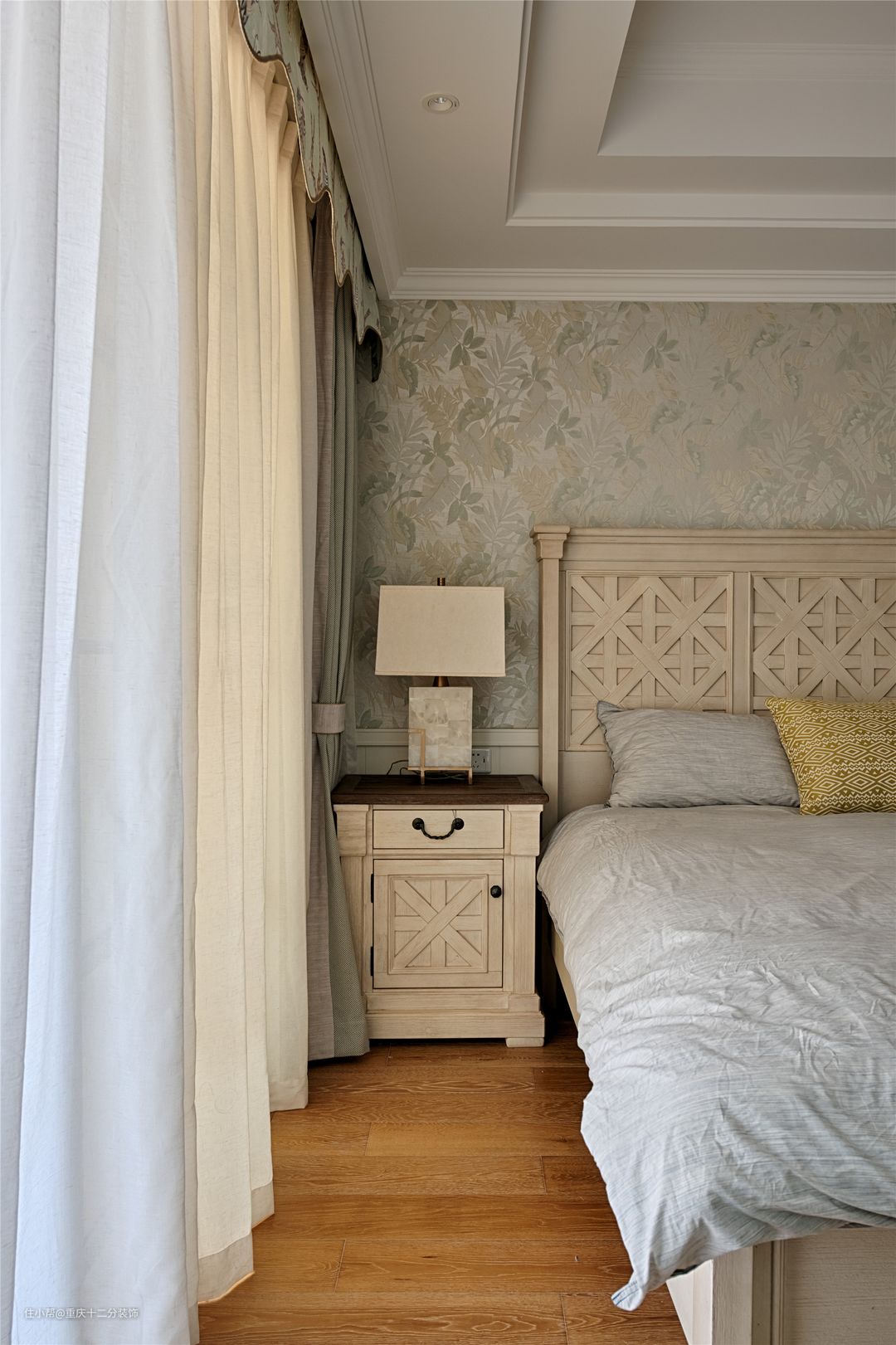 主卧空间,护墙板和清新淡然的墙纸,搭配奶茶色的家具与软饰,优雅中自显生机活力。卸下一身疲惫,泡个解压澡,十分惬意。
