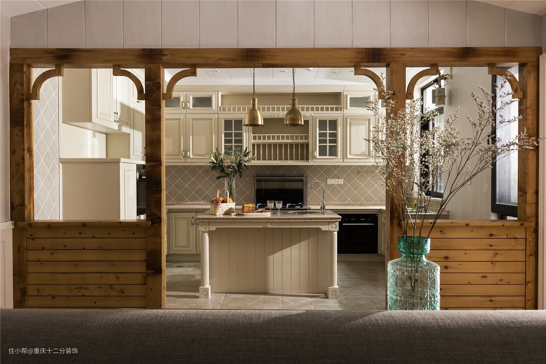 因为考虑到以后父母上楼不放便 把老人房和客房 设在了一楼,将以前餐厅的区域移动到了偏厅位置,离花园很近,在就餐的时候就能感受到户外花园带来的幸福感,然后把厨房打开,把原有餐厅位置融入厨房,增加一个中岛,平时早餐就可以在中岛,提高生活效率。