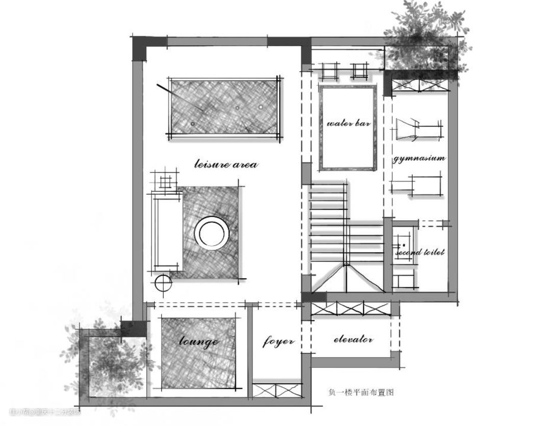 负一楼是作为一个娱乐设施空间,配有健身房和影音室;