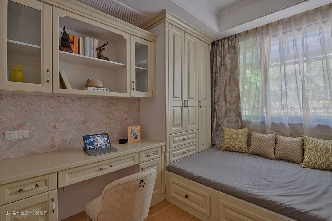 书房空间,采光良好,独立的工作学习之处,榻榻米便于休憩,玩耍;又有一定的收纳空间,工作和休息两不误。