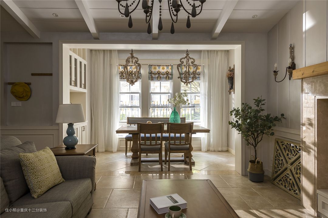 改造后动静区分,功能完整,背光区域空间光线得到极大改善,满足功能同时,空间变的舒适、灵动、通透。沙发和窗帘采用美式家具里常运用的元素,在沉稳的风格中,起到点缀的作用。