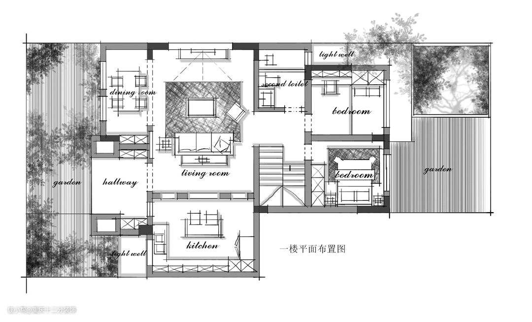 因为考虑到以后父母上楼不放便 把老人房和客房 设在了一楼,将以前餐厅的区域移动到了偏厅位置,离花园很近,在就餐的时候就能感受到户外花园带来的幸福感,然后把厨房打开,把原有餐厅位置融入厨房,增加一个中岛,平时早餐就可以在中岛,提高生活效率。