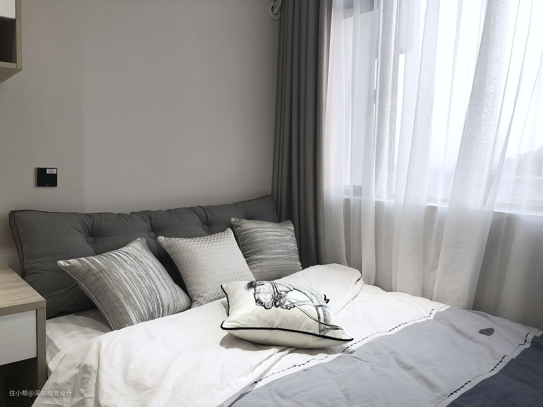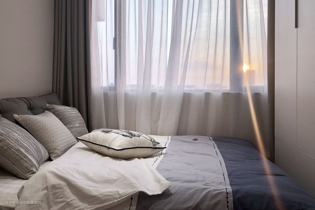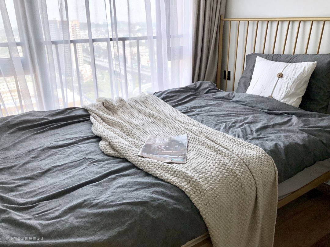 主卧用的是客厅同款墙布,色调也是跟着客厅走,整体效果比较统一。