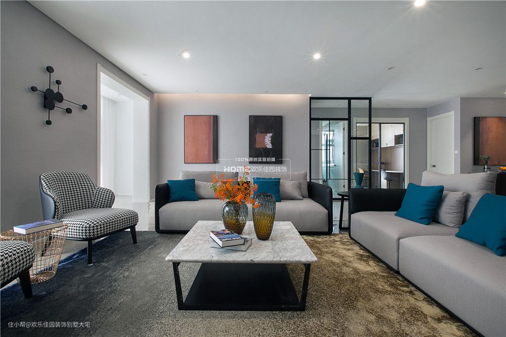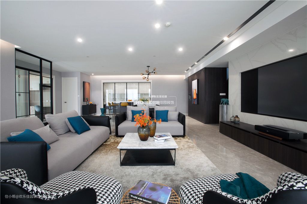 在家具的选择上,为了保证沙发的坐感及舒适性,主沙发是在实体店购买的,其他的家具都是网上淘的,整体的色彩及感觉延续了黑白灰的调子。